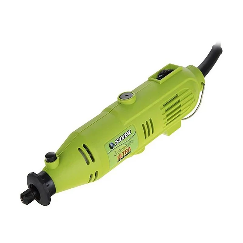 شرکت سیلور تولید کننده ی انواع ابزار آلات دستی و برقی با کیفیت و قیمت مناسب می باشد. فرز حکاکی مینیاتوری سیلور مدل GT M 135W دیمردار نیز تولید شرکت سیلور است. فرز های مینیاتوری ابزار های ظریف و دقیقی هستند که جهت طراحی بر روی فلز یا چوب و سطوحی از این قبیل ، برش دادن فلز یا چوب و ... استفاده می شود ، می توان تمامی کار های پولیش ، ساب و صیقل توسط ابزار هایی انجام می شود که بر روی فرز مینیاتوری نصب می شود. این مدل فرز مینیاتوری سیلور بدون متعلقات و ابزار های همراه ارائه می شود. فرز حکاکی سیلور دارای موتور 135 وات و دور گردش 8000 تا 30000 دور در دقیقه می باشد. شما می توانید از طریق لینک ست ابزار های فرز حکاکی مینیاتوری ابزار ها و لوازم مورد نیاز جهت فرآیند فرز کاری را تهیه نماید. همچنین نیز می توانید با تهیه جداگانه ی شلنگ و پایه و گیره ی فرز مینیاتوری از طریق همان لینک ست ابزار های فرز حکاکی مینیاتوری ؛ و نصب استفاده ی آن از فرز های مینیاتوری به دو صورت بهره برداری نمایید.