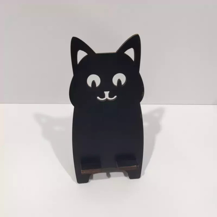 پایه چوبی نگهدارنده گوشی موبایل طرح گربه به رنگ مشکی (سیاه) - کدe-3
