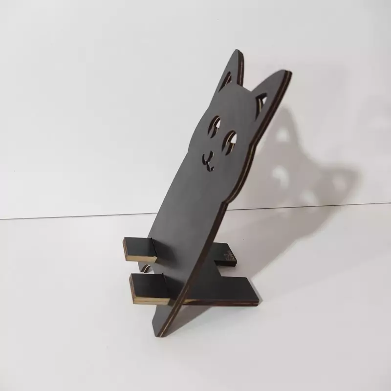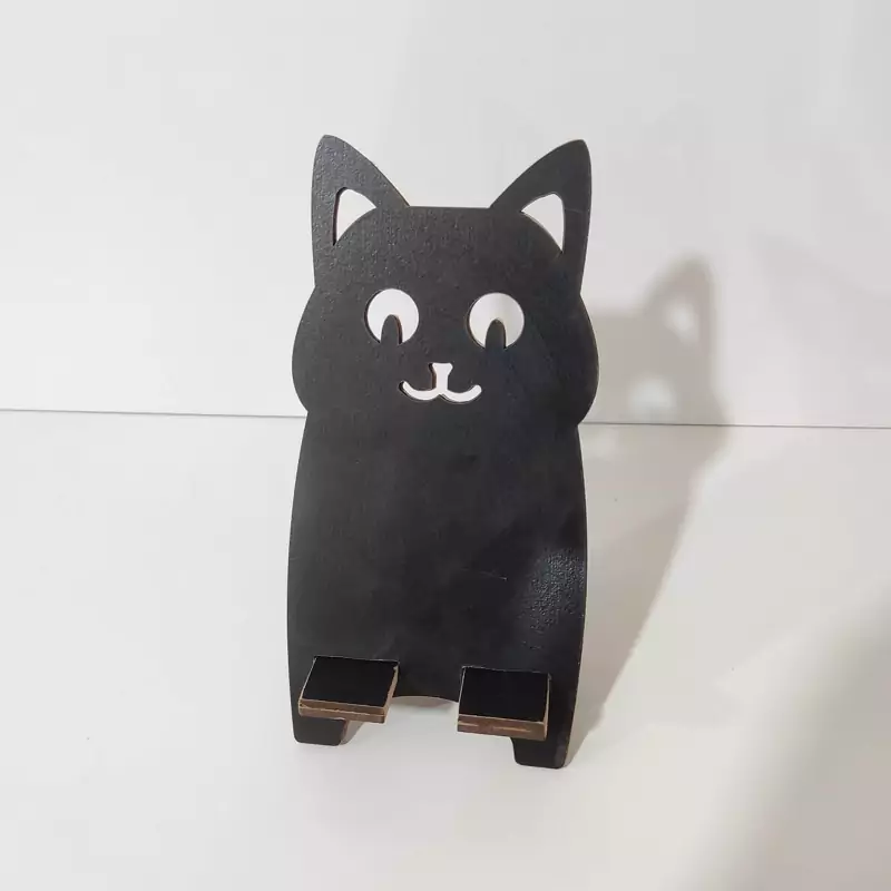 پایه چوبی نگهدارنده گوشی موبایل طرح گربه به رنگ مشکی (سیاه) - کدe-3