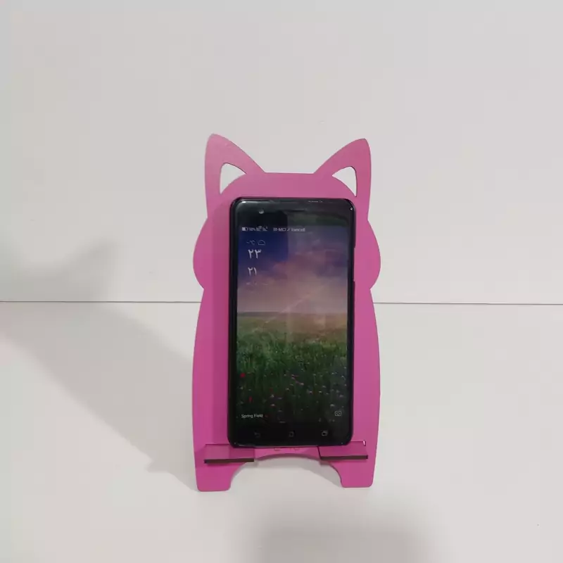 پایه چوبی نگهدارنده موبایل کدe-13 با طرح فانتزی و دارای رنگ بندی (جا موبایلی)
