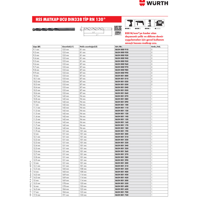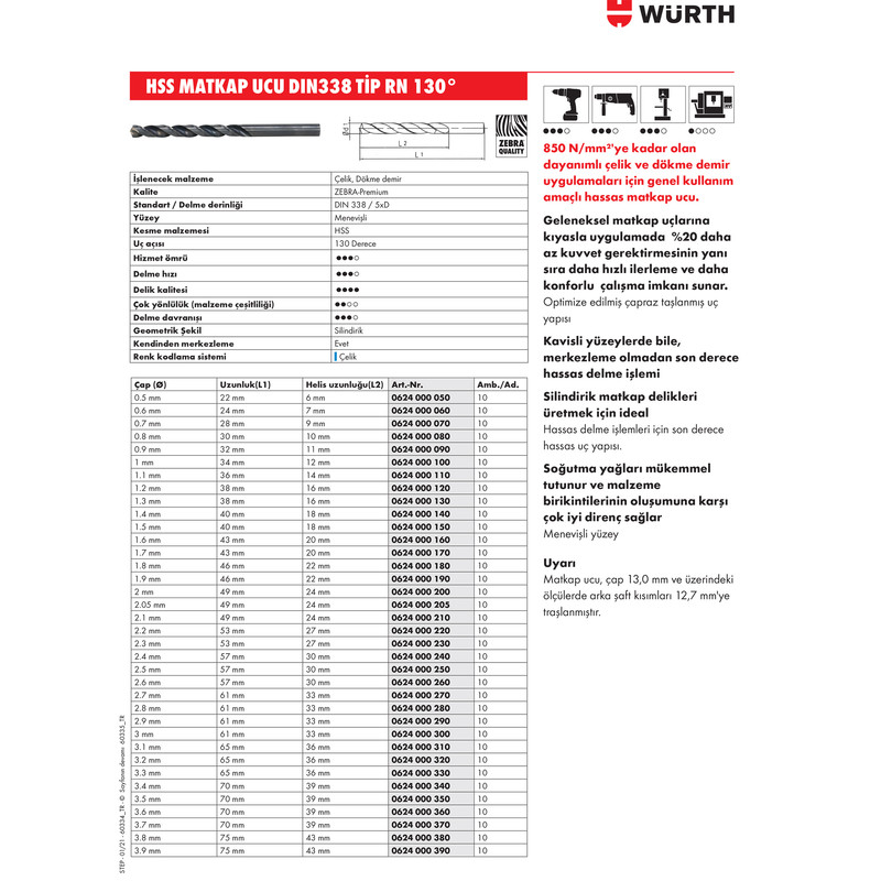 مته فولادی دقیق برای کاربردهای عمومی و جامع در فولاد و چدن تا 850 نیوتن بر میلیمتر مربع.