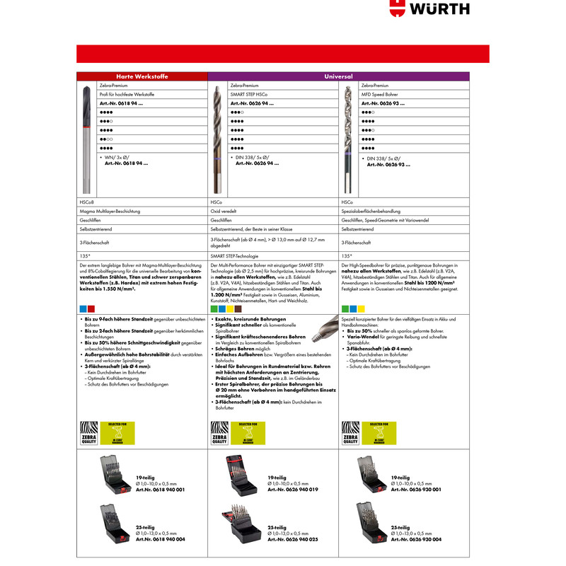 نیاز به 20٪ نیروی فشاری کمتر، سوراخ کاری سریعتر و تلاش کمتر در مقایسه با مته های معمولی