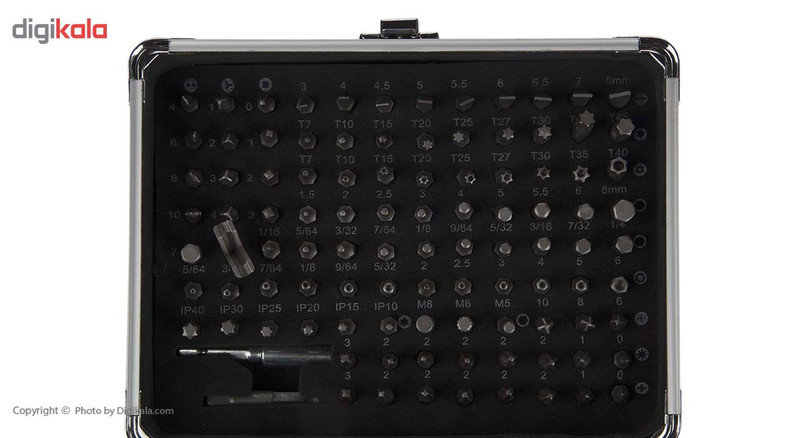 - دارای مجموعهی 102 عددی انواع سری پیچ گوشتی و درایو شامل سریهای دوسو، چهارسو، چهارسو خاردار، ستارهای، چهارگوش، آلنی، سه سو و ...