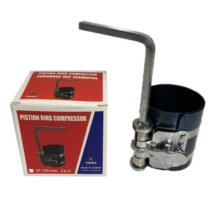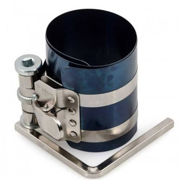 برای جا زدن پیستون داخل سیلندر از رینگجمعکن استفاده میشود. این ابزار طوری ساختهشده است که آسیبی به رینگ وارد نشود ین ابزار جنس بسیار خوبی دارد و قطر دهانه 57 تا 125 میلیمتر است. و ارتفاع آن 80 میلیمتر یا 3 اینچ هست که مخصوص خودرو سواری میباشد