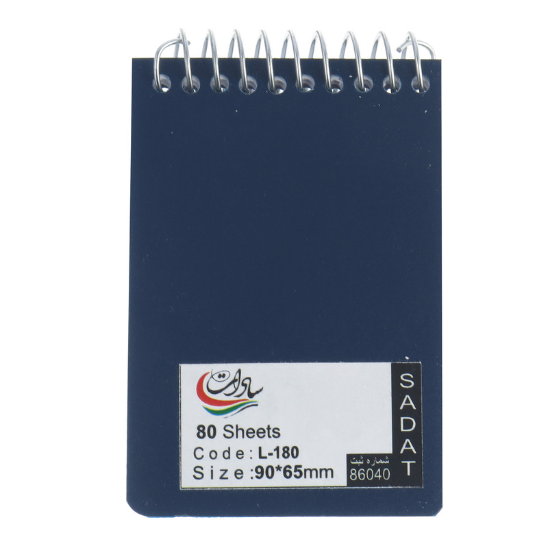 دفتر یاداشت سادات مدل L-280 با کاغذ 70 گرم و طلق 500 میکرون(ضخیم)و از سیم بسیار مقاوم بر خوردار میباشد مناسب اداره ها و تمامی شرکت ها، مدارس ها و هدیه دادن میباشد