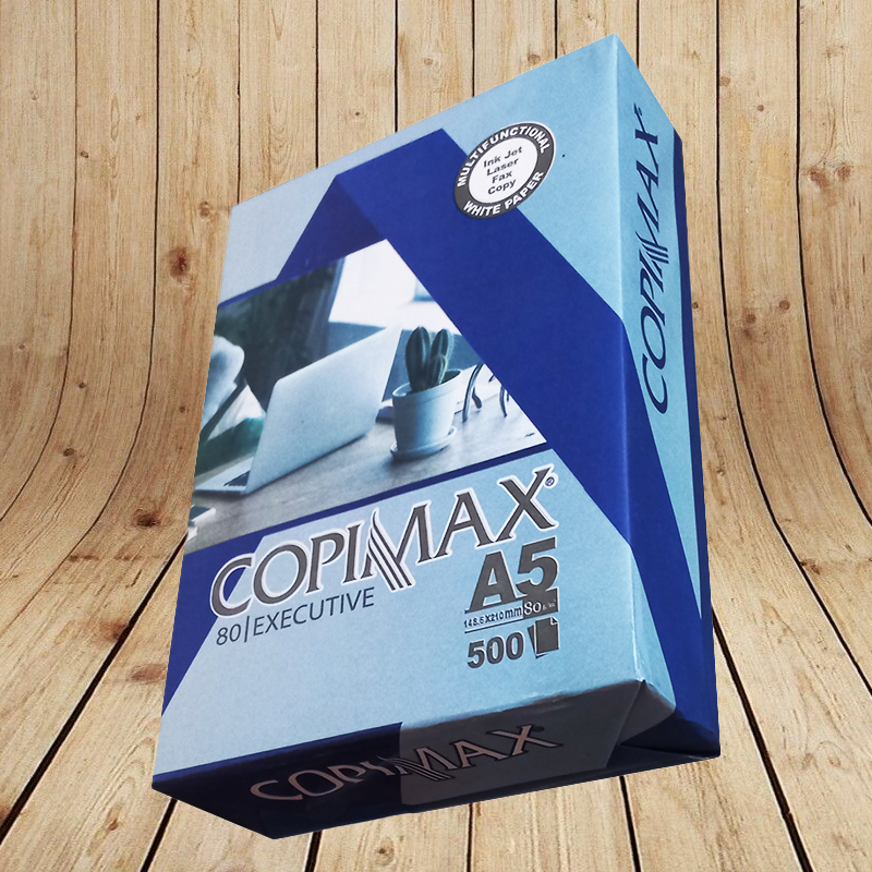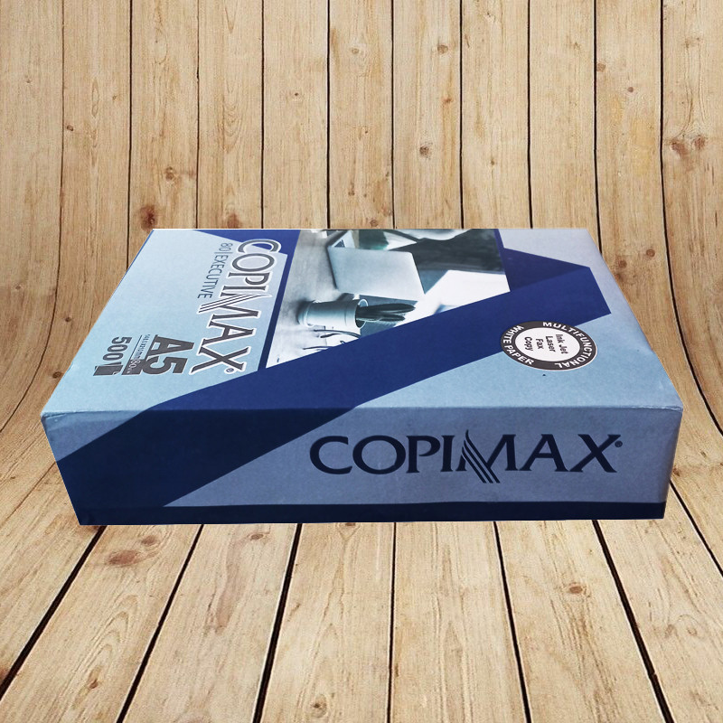 کاغذ A5 گرماژ 80 از برند کپی مکس درجه یک کاملا سفید و تولید شده به کمک فرآیند آلکالاین که از ذرات فیبر استخراج شده از درختان اکالیپتوس ساخته شده است.