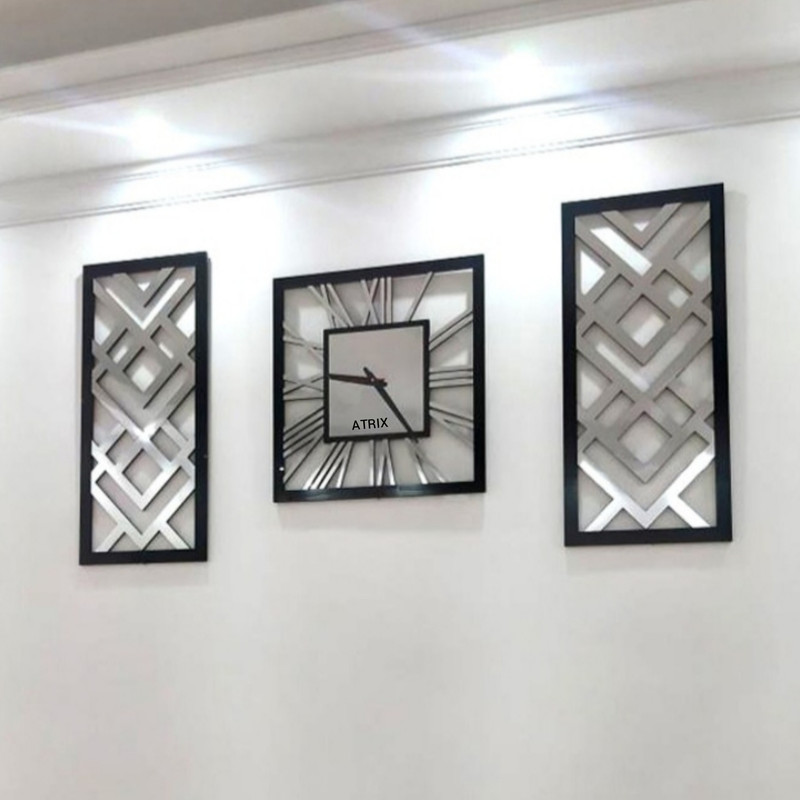 ساعت دیواری آتریکس M36 یک ساعت بسیار شیک همراه با دو عدد گوشواره است شما با نصب این ساعت دیگری نیازی به نصب تابلو یا...ندارید ابعاد ساعت 60سانتی متر و ابعاد تابلو ها هر کدام 35سانتی متر است جنس این محصول زیبا را پلکسی نشکن تشکیل می دهد که کاملا براق و آیینه ی نیز می باشد پشت محصول به وسیله ی یک لایه چوب مقاوم شده است این ساعت را میتوانید در پذیرایی و سالن های بزرگ استفاده کنید