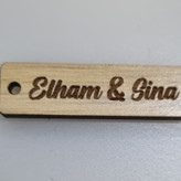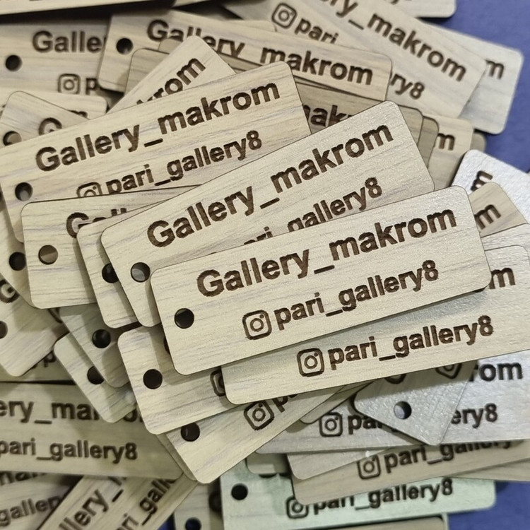 80 لیبل چوبی با حک متن و لوگوی اختصاصی حداقل سفارش 80 عدد سایز 4.5 در 1.5 با یک خط متن و علامت اینستاگرام،روبیکا یا ایتا
