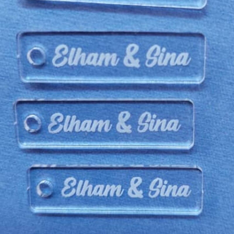 30 عدد لیبل پلکسی شفاف با حک لوگو و متن اختصاصی