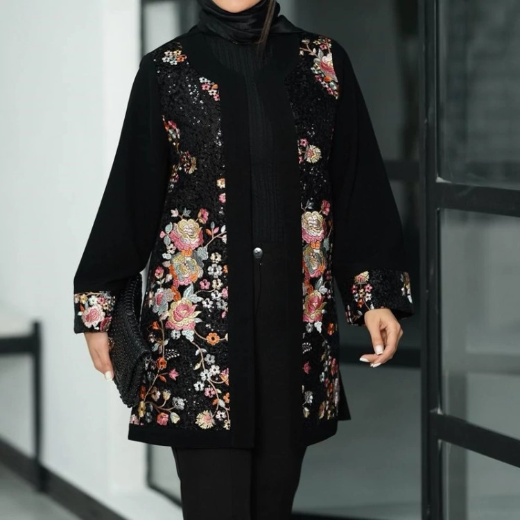 🧵جنس پارچه :کرپ لمه وپیش کار مخمل پولک دوزی