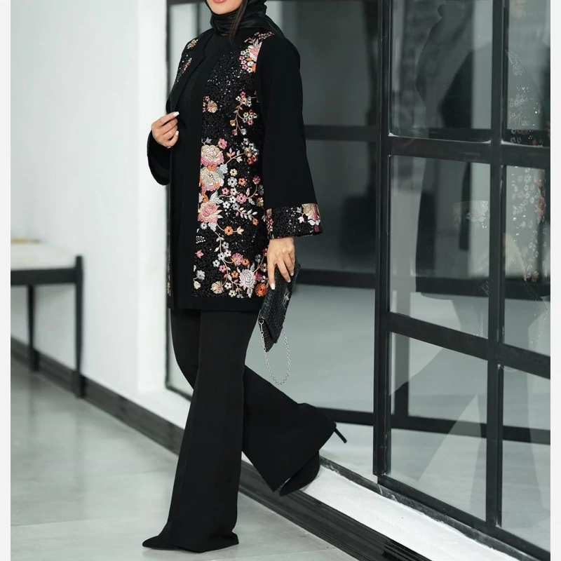 🧵جنس پارچه :کرپ لمه وپیش کار مخمل پولک دوزی