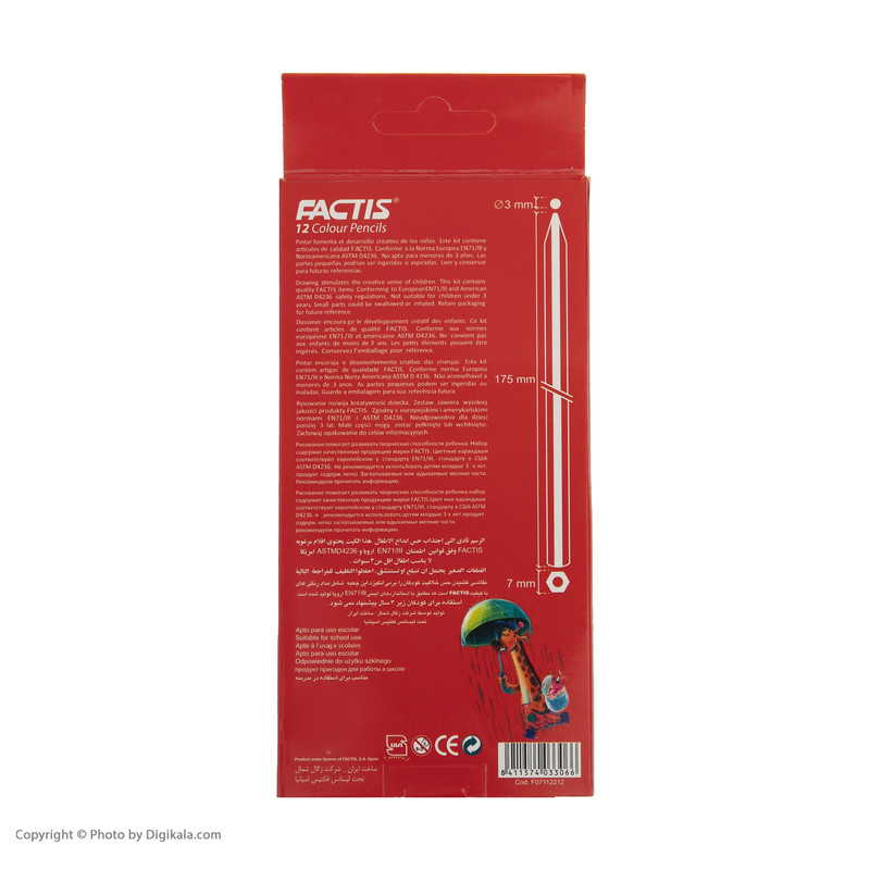 - تحت لیسانس فکتیس اسپانیا - ساخت ایران - شرکت زگال شمال - برای کودکان زیر 3 سال ممنوع است - قطر نوشتاری 3 میلیمتر - مطابق با استاندارهای ایمنی EN71/111 اروپا و ASTMD4236 آمریکا
