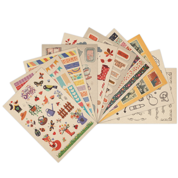 کاغذ A5 نخودی 90 گرم (بدون چسب) 10 برگ با طرح های متفاوت شما می توانید از این مجموعه برای ساخت و تزیین پلنر(دفتر برنامه ریزی)، بولت ژورنال، اسکرپ بوک و... استفاده نمایید. طرح های مورد نظر را بریده و با چسب ماتیکی یا غلطکی بر روی دفتر خود بچسبانید.