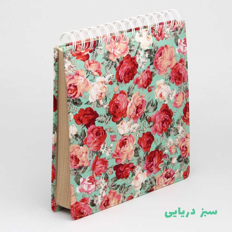 - کاغذ نخودی ( 105 گرم ) - جلد پارچه ای دوردوخت بادوام و با لایه ای از جنس ابر برای ایجاد حس نرمی - فنر دوبل مقاوم