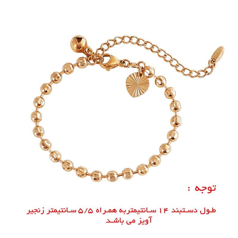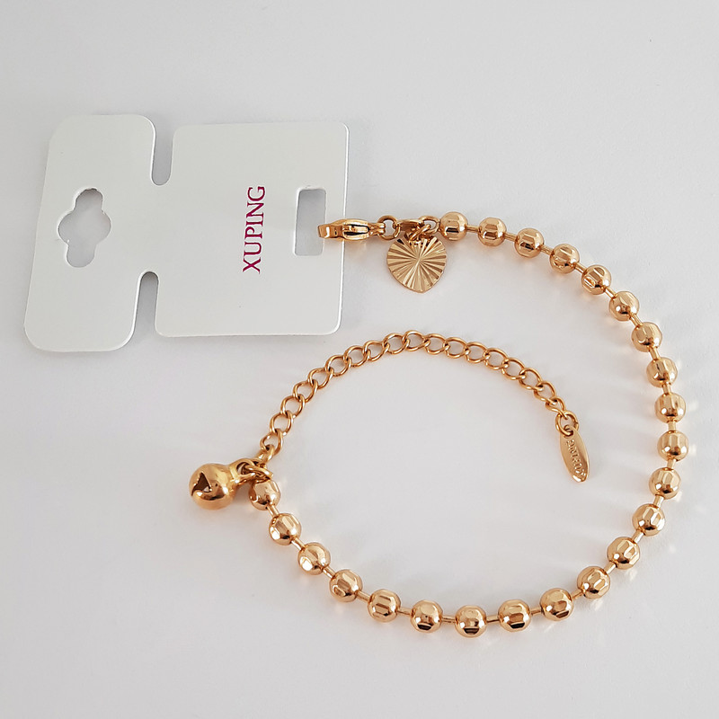 دستبند دخترانه فوق ساخت شرکت معتبر شوپینگ (ژوپینگ) می باشد. این محصول از آلیاژ مس ساخته شده و دارای روکش طلا است. استفاده از آلیاژ مس تضمین سلامت این محصول است که هیچ گونه حساسیتی برای شما ایجاد نمی کند. وزن این دستبند 4 گرم و طول دستبند 14 سانتیمتر به همراره 5/5 سانتیمتر زنجیر آویز (تغییر اندازه) می باشد.