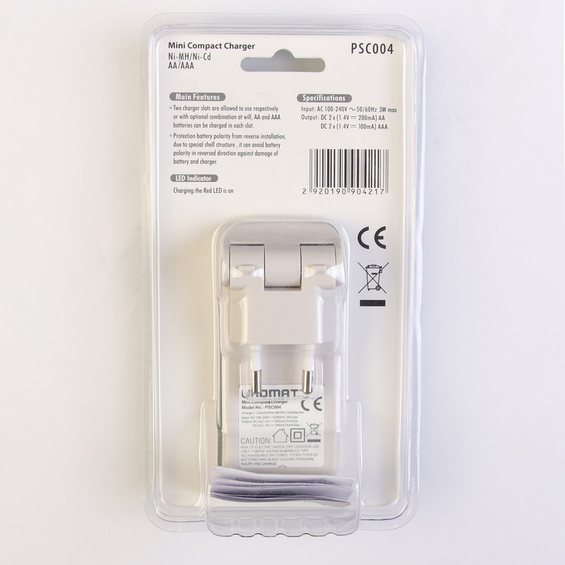 شارژر باتری یونومات مدل PSC004 دارای سایز مینی بوده و سری 2 شاخ آن دارای قابلیت جمع شوندگی دارد که حمل آن را در کیف و سفر را راحت تر کرده.