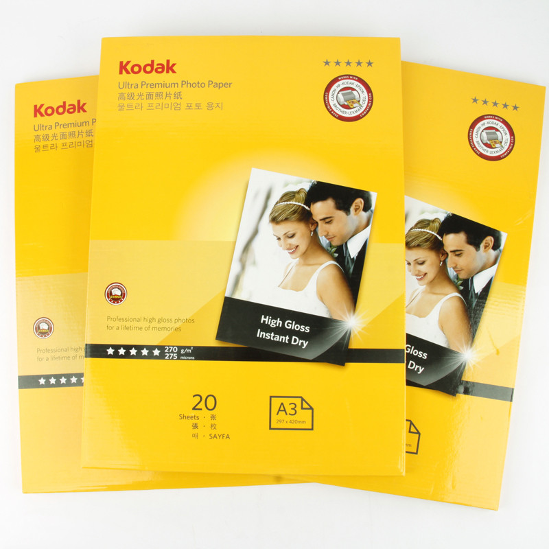 ثبت کردن خاطرات از کارهای لذتبخشی است که بهطور مرتب انجام میدهیم. بعضی از افراد عکسها و فیلمهای خاطرهانگیز خود را در موبایل یا لپتاپ خود ذخیره میکنند ولی ممکن است در اثر پرشدن حافظه دستگاه موردنظر یا به مرور زمان عکسهای ما پاک شوند. چاپ عکس یکی از راههای مطمئن برای حفظ لحظات شیرین است. کاغذ عکس کداک مدل Ultra Premium سایز A4 در بسته 20 عددی تولید و عرضه میشود. این محصول از تولیدات شرکت معتبر کداک است. سطح این کاغذ بسیار صاف و صیقلی است. این نوع از کاغذ چاپ در صنعت عکاسی و همچنین برای عموم بسیار شناختهشده و کاربردی است بهصورتی که برای دستگاههای چاپ خانگی نیز کاربرد داشته و بسیار محبوب است. کاغذ عکس کداک مدل Ultra Premium به دلیل جنسی که دارد رنگ را به درون بافت خود جذب نمیکند که همین مسئله باعث میشود جوهر روی سطح کاغذ قرار بگیرد و تصاویر جلوهی زیباتر و درخشانتری داشته باشند. برای داشتن یک تصویر با کیفیت و شفاف، نیاز است تا کاغذی که انتخاب میشود، سطح یکدست و همواری داشته باشد. کاغذ عکس کداک بهخوبی از عهده کار برآمده است. گفتنیست هر چه گرماژِ یک کاغذ بیشتر باشد، کیفیت چاپ روی آن بهتر خواهد بود.
