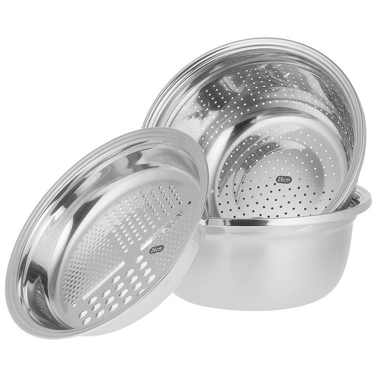 آبکش و لگن به همراه رنده . استیل درجه یک هندی به عرض 26 سانت