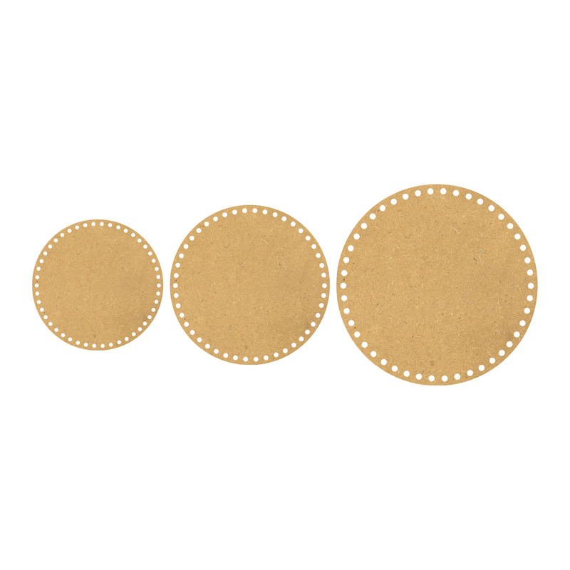 بیس چوبی دایره به ضخامت 3 میلیمتر مناسب برای قلاب بافی است. جنس این بیس از چوب ام دی اف می باشد. سبک و مقاوم دارای سطحی صیقلی است. سه عدد در قطر های 25 سانت و 30 سانت و 40 سانت