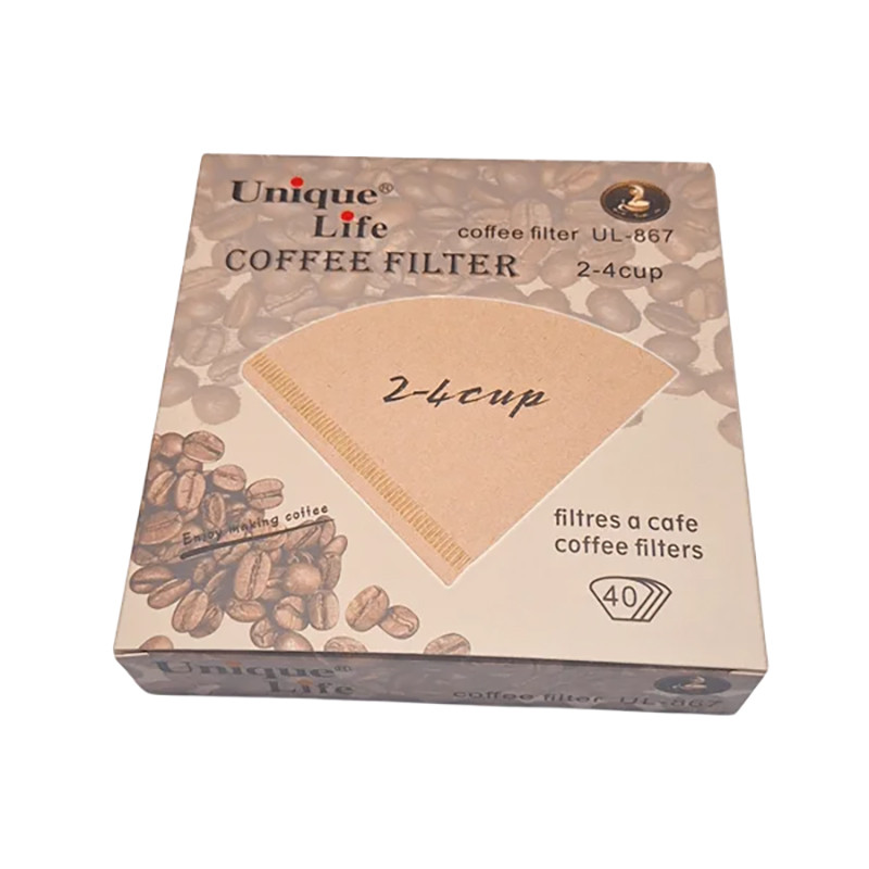 فیلتر قهوه یونیک لایف مدل UL-867 مناسب جهت دم کردن قهوه به وسیله قهوه ساز V60 و قهوه ساز هایی با سایز های 2-4 کاپ همچنین انواع دریپرها (قهوه ساز های چکهای) میباشد. فیلتر کاغذی UL-867 از مواد کاملا طبیعی بهداشتی تشکیل شده است. این فیلتر قهوه در بسته بندی ۴۰ عددی عرضه میگردد. فیلتر کاغذی قهوه یکبار مصرف است و باعث سهولت و راحتی در دم کردن قهوه میشود.