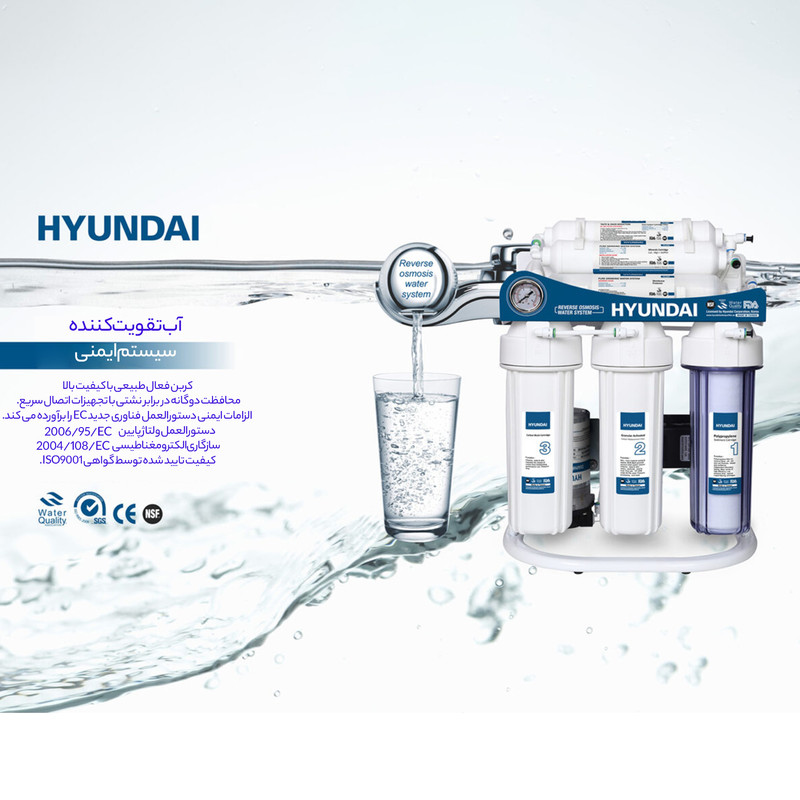 + موارد بیشتردستگاه تصفیه آب هیوندای تحت لیسانس کره جنوبی مدل H700 ، توسط فرایند اسمز معکوس (Reverse Osmosis System) ، می تواند هر آبی را به آب تصفیه شده و کاملا بهداشتی مناسب شرب تبدیل کند. قطعات به کار رفته در ان دستگاه تایوانی بوده و از بالا ترین استاندارد ها بهره مند است . از قابلیت های این دستگاه می توان حذف شن ، ماسه ، گل و لای ، کلر ، ترکیبات آلی ، رنگ ، بو ، طعم ، نیترات ، نیتریت ، آرسنیک ، کبالت ، جیوه ، سرب ، فلزات سنگین اشاره نمود. یکی از مهمترین نکات در انتخاب یک دستگاه تصفیه آب کارآمد و بهداشتی ، انتخاب دستگاهی است که تمام اجزا و قطعات آن قابل استفاده جهت تولید آب بهداشتی باشد ، اگر قسمتی از اجزا دستگاه تصفیه آب فاقد استاندارد های بهداشتی جهت استفاده انسان نباشد ، این موضوع می تواند باعث اضافه شدن مواد سمی به آب تولید شده توسط دستگاه شود ، بنابراین انتخاب در امر خرید یک دستگاه تصفیه آب استاندارد ، مهمترین گام در بهره مندی از آبی بهداشتی و گوارا است.