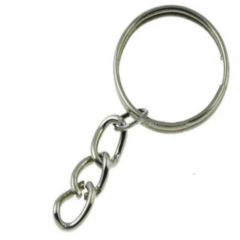 بسته 100 عددی حلقه و زنجیر فلزی مناسب برای هر نوع جاکلیدی بوده دارای قطر حلقه دو و نیم (2.5) سانتی متر و طول زنجیر سه (3) سانتی متر و طول زنجیر و حلقه (5.5) سانتی متر است رنگ استیل یا نقره ای ضد زنگ بسیار سبک