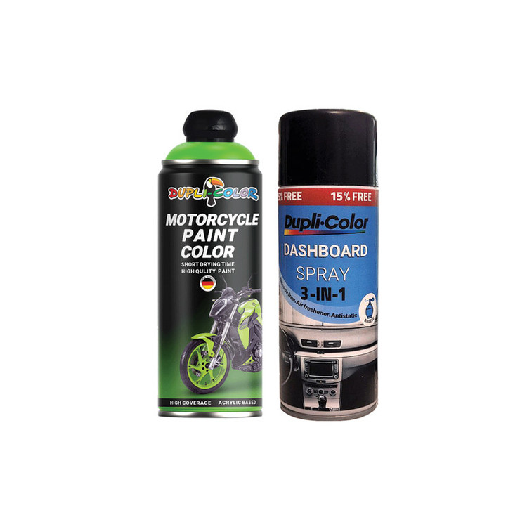 اسپری پولیش و خوشبو کننده داشبورد رایحه بلو و اسپری رنگ موتور سیکلت سبز فلورسنت دوپلی کالر مدل شب تاب حجم 400 میلی لیتر مجموعه 2 عددی