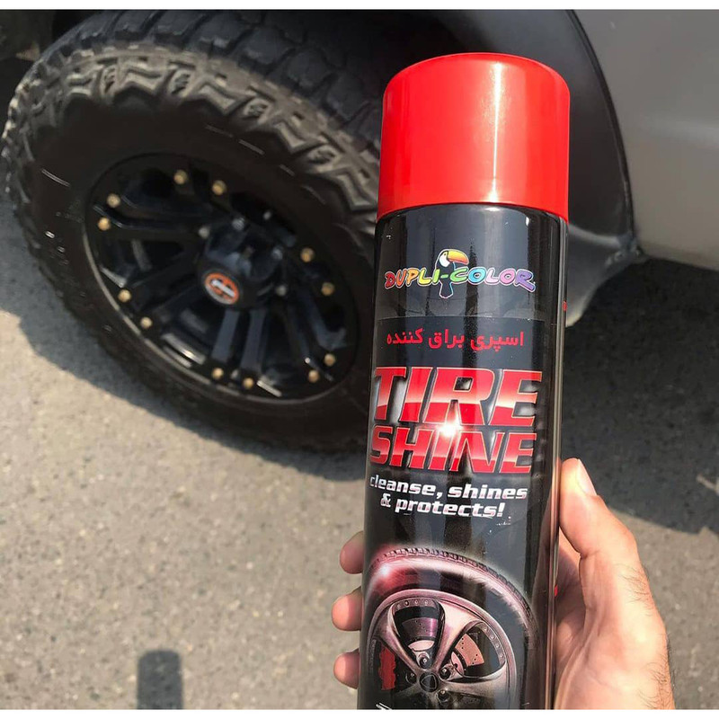 یکی از راههای مراقبت از لاستیک خودرو، استفاده از اسپریهای لاستیک خودرو است. این اسپریها میتوانند به خوبی از لاستیک خودرو محافظت کنند و ظاهر زیبایی به آنها ببخشند. محصول فوق یکی از انواع این اسپریها بوده که شرکت «دوپلی کالر» (Dupli Color) آن را تولید میکند. این اسپری حجمی 500 میلیلیتری داشته و انتخاب مناسبی برای لاستیک خودرو خواهد بود. از مهمترین ویژگیهای این اسپری میتوان به خواص براقکنندگی، تمیزکنندگی و محافظتی آن اشاره کرد. مواد به کار رفته در ترکیب این محصول کمک میکند تا لایهای براق روی سطح لاستیک ایجاد شود. این لایه در کنار براقیت میتواند تاحدی آلودگیهای لاستیک را از بین برده و از لاستیک دربرابر عوامل محیطی محافظت کند. پس از اسپری کردن این محصول روی لاستیک رنگ آن احیا میشود. از دیگر مزایای این محصول میتوان به استفادهی راحت از آن اشاره کرد. پس از اسپری کردن این ماده روی لاستیک نیازی به دستمال برای تمیز کردن ندارید.