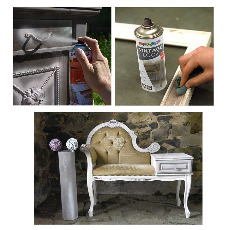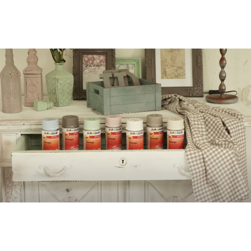 اسپری Vintage DUPLI-COLOR یک اسپری با اثر گچ برای اهداف تزئینی است. یک روکش مات ایجاد می کند. در زمینه های دکوراسیون، مبلمان، طراحی، بازسازی و یا یراق آلات داخلی زیباتر زندگی در واقع با گرایش به شیک های فرسوده مرتبط است. خواه ویترین، صندوقچه، قاب عکس، میز، اشیاء تزئینی، چمدان یا تابوت - همه آنها به یک ظاهر قدیمی یا مستعمل بریده شده اند.