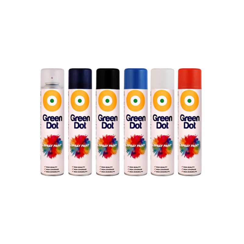اسپری های رنگ گرین دات یک نوع اسپری رنگ بر پایه رزین آلکیدی یا به اصطلاح رنگ روغنی می باشند که از کیفیت قابل قبولی برخوردارند. این اسپری ها پوشش مناسبی روی سطح دارند و به نسبت قیمت می توانند برای شما یک سطح رنگ شده مناسب را به ارمغان بیاورند. حجم اسپری های گرین دات 300 میلی لیتر می باشد.