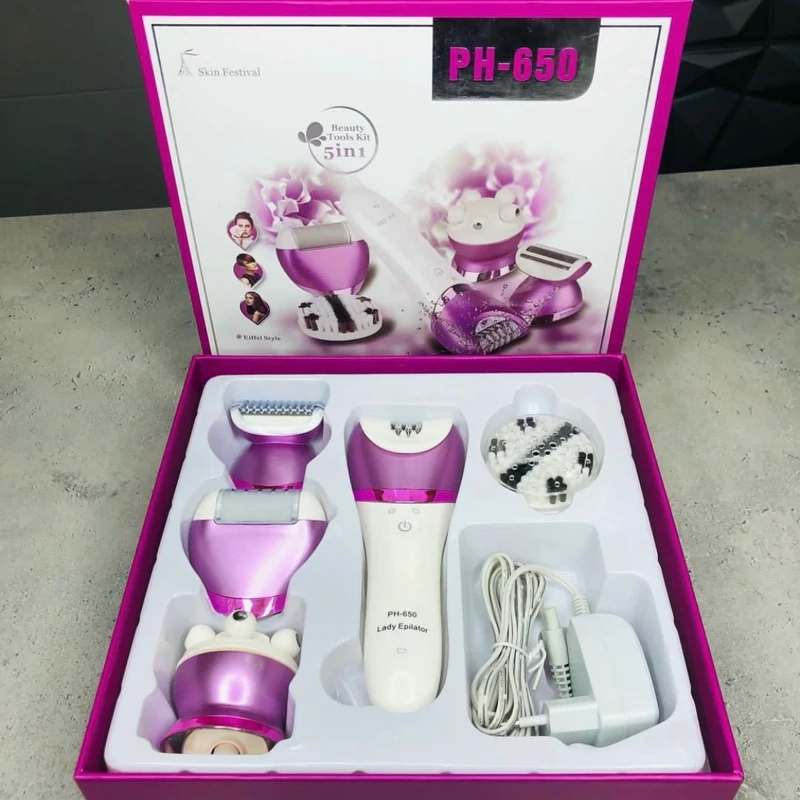 5 كله ي مجزا(1-موكن بدن و صورت 2-شيور 3-سنگ پا 4-ماساژور صورت 5-فيس براش)