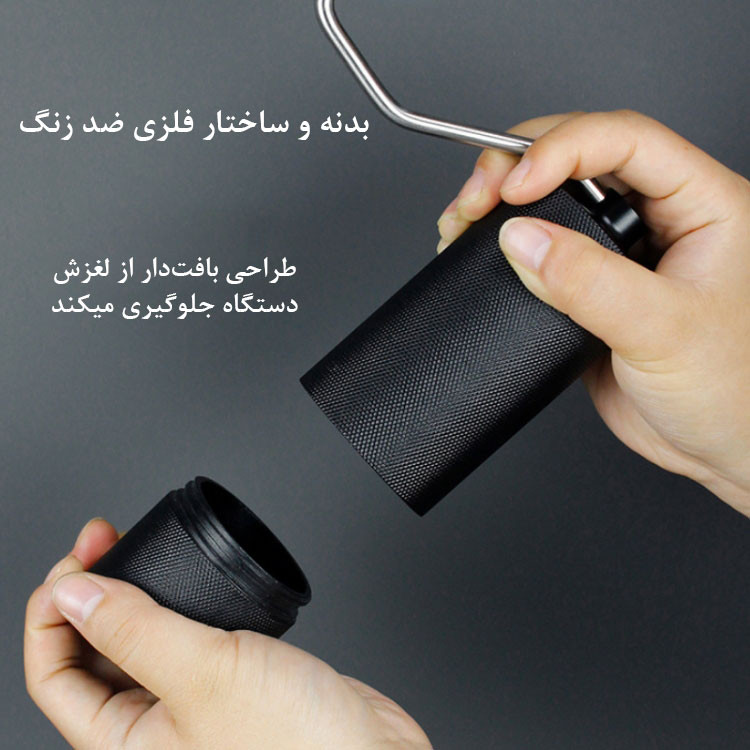 آسیاب دستی قهوه مدل Pentagon از برند Cafe Rhyme با طراحی دسته چوب بلوط و فلز برای آسیاب دستی دانههای قهوه طراحی شده و یکی از بهترین انتخابها برای تهیه قهوهای خوشعطر و بو در منزل ، سفر ، کمپینگ و ... محسوب میشود. همانطوری که در عکسها به چشم میخورد، بدنه و ساختار داخلی از جمله تیغهی اصلی این آسیاب دستی از فلز ساخته شده است که کیفیتی مطلوب دارد و با گذشت زمان و استفادهی مداوم، کیفیت و ظاهرش تغییر نخواهند کرد. اهرم بالای محفظه به شما این امکان را میدهد که خرد کردن دانههای قهوه را بهراحتی و بدون دردسر انجام دهید. برای خرد کردن دانههای قهوهی داخل محفظه فقط کافی است ابتدا درجه ای که قصد دارید قهوه را با آن آسیاب کنید تنظیم کنید و سپس اهرم بالایی را با دستتان بچرخانید. بعد از خرد شدن دانهها، پودر قهوه به محفظهی تعبیه شده در پایین آسیاب منتقل خواهد شد. این محفظه بهصورت پیچشی از بدنهی اصلی جدا میشود تا بهآسانی پودر قهوه را به فرنچپرس یا قهوهساز منتقل کنید. با خرد کردن دانهی قهوه توسط این آسیاب دستی، قهوه علاوه بر تازگی، عطر و طعم خاص و منحصربهفردش را حفظ خواهد کرد. مدل Pentagon برای تهیهی پودر قهوه فرانسه و اسپرسو در منزل گزینهای ایده آل است.برای تغییر درجهی آسیاب محفظه پایین را باز کنید،سپس با ثابت نگه داشتن دستهی آسیاب درجهی داخل محفظه را به دلخواه تغییر دهید. این آسیاب دستی علاوه بر عمری طولانی، بسیار آسانتر از محصولات برقی نظافت میشوند.در داخل جعبه برس تمیز کنندهی مخصوص قرار دارد که می توانید همهی اجزای آسیاب را نظافت کنید.نکته : چرخاندن بیش از حد دسته بر خلاف جهت عقربه های ساعت پیشنهاد نمی شود.توجه : دستگاه فقط برای آسیاب قهوه بو داده استفاده شود.