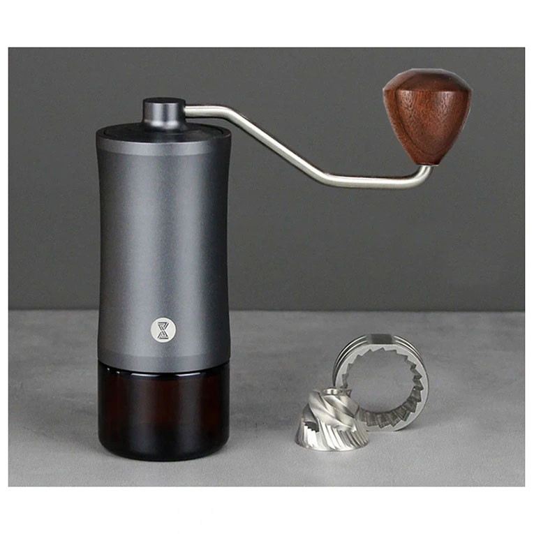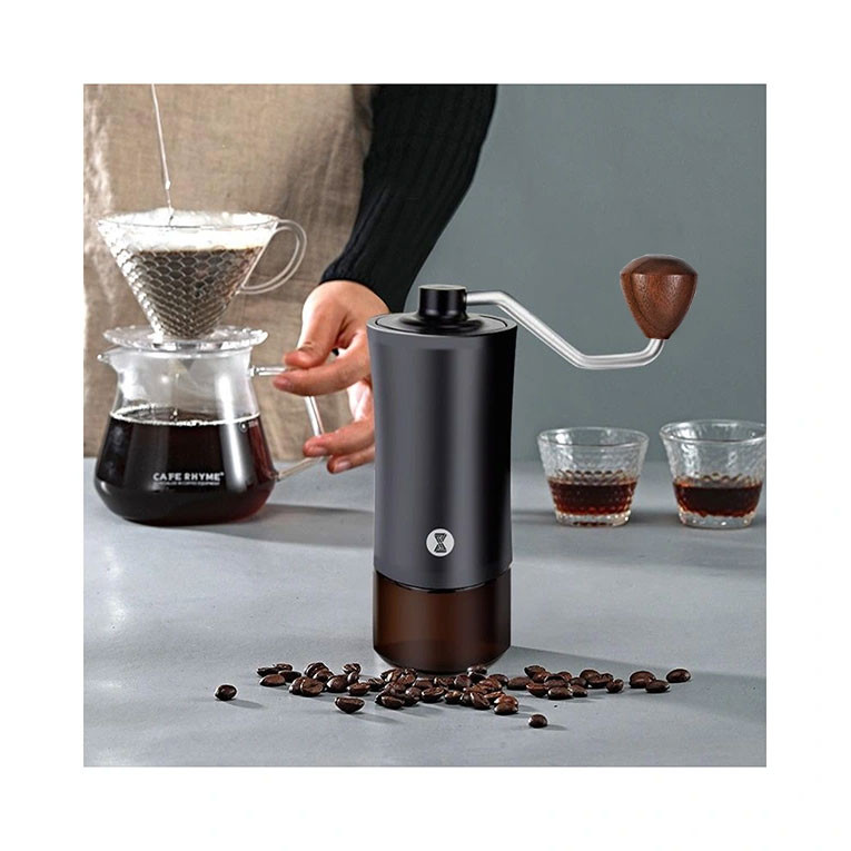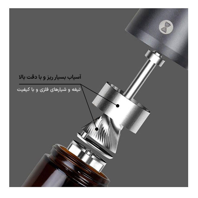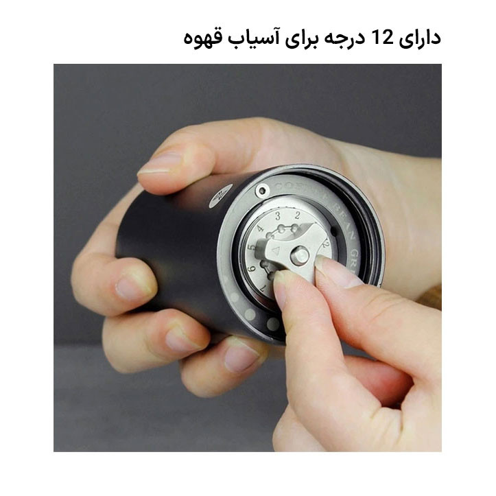 آسیاب دستی قهوه مدل Conical Burr Grinder از برند Cafe Rhyme با طراحی دسته چوب بلوط و فلز برای آسیاب دستی دانههای قهوه و حبوبات طراحی شده و یکی از بهترین انتخابها برای تهیه قهوهای خوشعطر و بو در منزل ، سفر ، کمپینگ و ... محسوب میشود. همانطوری که در عکسها به چشم میخورد، بدنه و ساختار داخلی از جمله تیغهی اصلی این آسیاب دستی از فلز ساخته شده است که کیفیتی مطلوب دارد و با گذشت زمان و استفادهی مداوم، کیفیت و ظاهرش تغییر نخواهند کرد. اهرم بالای محفظه به شما این امکان را میدهد که خرد کردن دانههای قهوه و یا حبوبات را به راحتی و بدون دردسر انجام دهید. برای خرد کردن دانههای قهوهی و یا حبوبات داخل محفظه فقط کافی است ابتدا درجه ای که قصد دارید قهوه و یا حبوبات را با آن آسیاب کنید تنظیم کنید و سپس اهرم بالایی را با دستتان بچرخانید. بعد از خرد شدن دانهها، پودر قهوه و یا پودر حبوبات به محفظهی شیشهای تعبیه شده در پایین آسیاب منتقل خواهد شد. این محفظه شیشهای بهصورت پیچشی از بدنهی اصلی جدا میشود تا بهآسانی پودر قهوه را به فرنچپرس یا قهوهساز منتقل کنید. با خرد کردن دانهی قهوه و یا حبوبات توسط این آسیاب دستی، قهوه و حبوبات علاوه بر تازگی، عطر و طعم خاص و منحصربهفردش را حفظ خواهد کرد. مدل Conical Burr Grinder برای تهیهی پودر قهوه فرانسه و اسپرسو در منزل گزینهای ایده آل است.برای تغییر درجهی آسیاب محفظه پایین را باز کنید،سپس با ثابت نگه داشتن دستهی آسیاب درجهی داخل محفظه را به دلخواه تغییر دهید. این آسیاب دستی علاوه بر عمری طولانی، بسیار آسانتر از محصولات برقی نظافت میشوند.در داخل جعبه برس تمیز کنندهی مخصوص قرار دارد که می توانید همهی اجزای آسیاب را نظافت کنید.نکته : چرخاندن بیش از حد دسته بر خلاف جهت عقربه های ساعت پیشنهاد نمی شود.توجه : دستگاه فقط برای آسیاب قهوه رست شده (بو داده شده) استفاده شود.