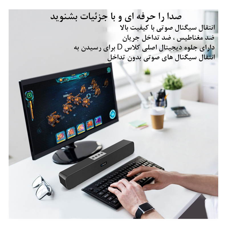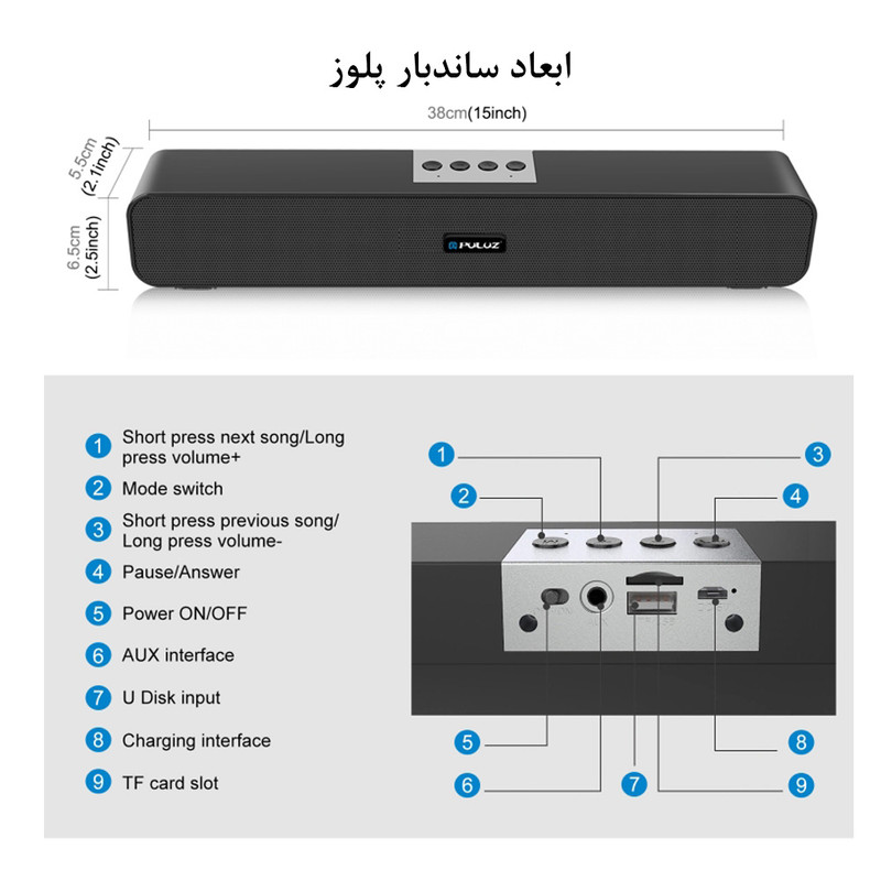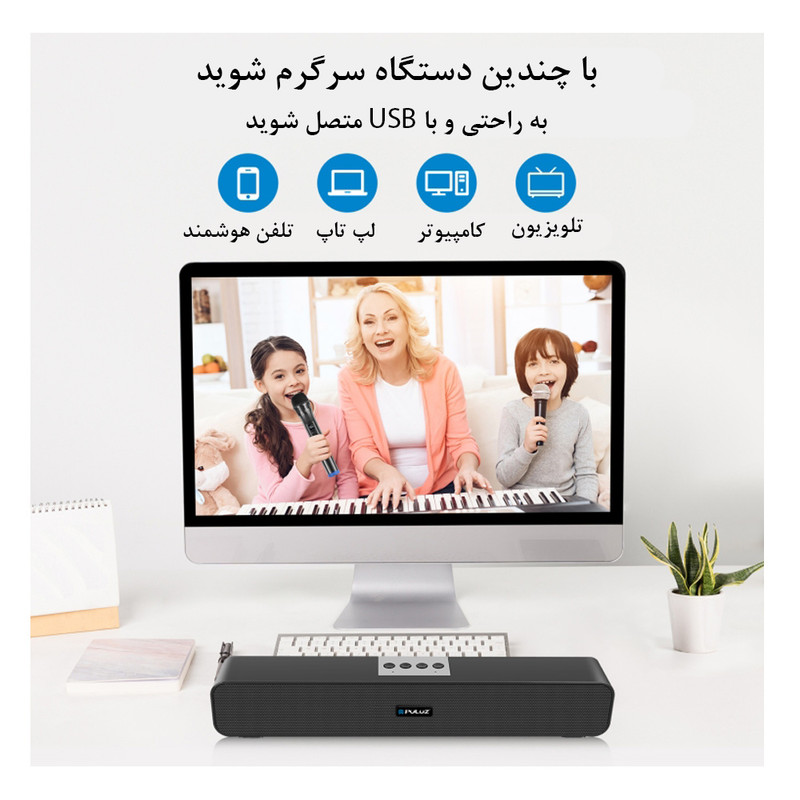 ساندبار اسپیکر قابل حمل برند پلوز قابل اتصال به تلویزیون ، گوشی هوشمند ، کامپیوتر و لپ تاپ و ... است. این محصول فوق العاده دارای یک طراحی ویژه 4 درایور قدرت ، کیفیت HD ، فناوری کاهش نویز دیجیتال DSP برای گوش دادن به آهنگ ها بدون نویز که مناسب برای جشنها و مهمانیهای خاص شماست. تفاوت این محصول با مدل های قدیمی می توان به باتری 1200 میلی آمپر ( با خیال راحت بیش از 6 ساعت از موسیقی لذت ببرید )و نسخه 5.0 بلوتوث با فاصله بیش از 10 متر در این محصول اشاره کرد که این محصول را به یک ساندبار حرفه ای و کار آمد تبدیل کرده است. یکی دیگر از ویژگی های این محصول رادیو FM است که به شما این امکان را می دهد که از بین انواع ایستگاه های رادیویی رایگان برای گوش دادن به اخبار، برنامه های گفتگو، رادیو و غیره بپردازید. قابلیت پشتیبانی از AUX ، کارت میکرو SD ، دیسک USB با کلیدهای کنترلی چند منظوره برای روشن/خاموش کردن، پاسخ/مکث، تغییر حالت، آهنگ بعدی و تنظیم صدا بر راحتی استفاده از این محصول تعبیه شده است . اسپیکر پلوز به وسیله درگاه Type C شارژ می شود.