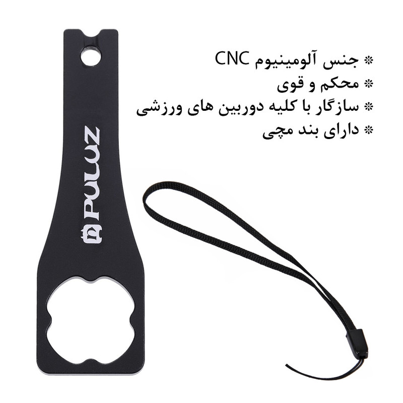 آچار فلزی از برند پلوز را می توانید برای محکم کردن پیچ انواع دوربین های ورزشی استفاده کنید. با توجه به اینکه دوربین های ورزشی قیمت های بالایی دارند و صدمه دیدن دوربین ها جبران ناپذیر است بهتر است از اتصال ایمن تجهیزات به دوربین ورزشی خود مطمئن شوید . آچار فلزی Puluz را به دور پیچ دوربین ورزشی خود متصل کنید و پیچ را تا جایی که به دستگاه آسیب نزند محکم کنید. این کار شما باعث می شود تا در حین ورزش های پر تحرک و لرزش های شدید و یا پریدن دوربین از مانت خود جدا نشود. به همراه آچار فلزی پلوز یک عدد بند مچی نیز ارائه می شود . ساختار آچار پلوز از آلومینیوم CNC و در برابر شکستگی بسیار مقاوم است.