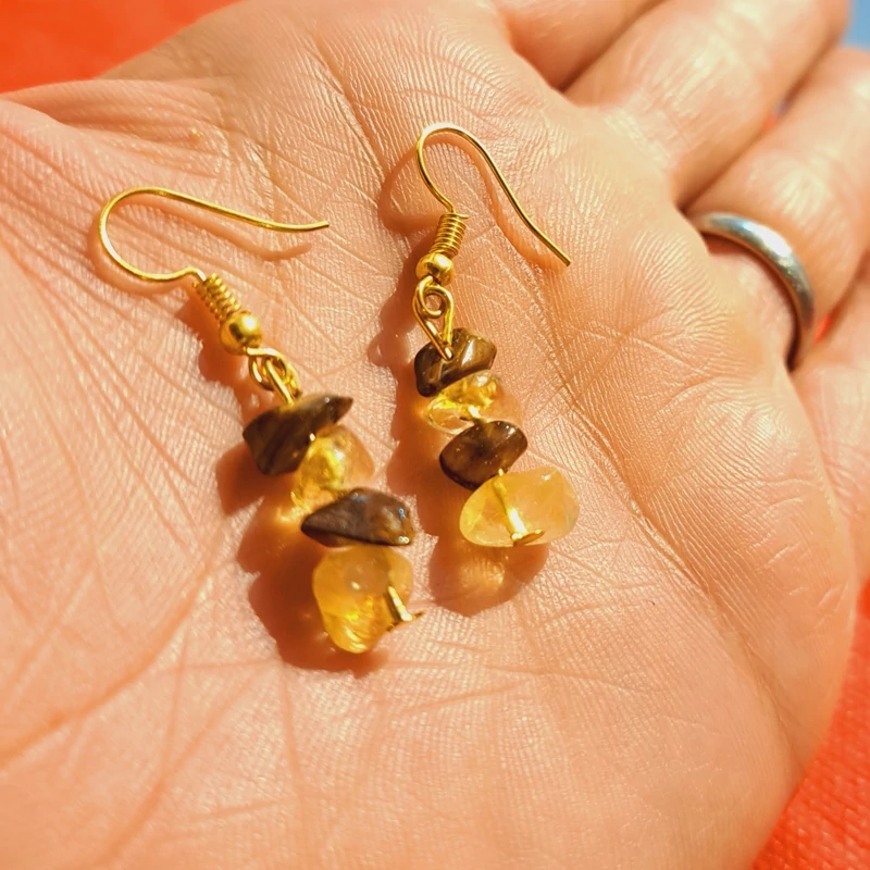 آویز گوشواره چشم ببر اصل آویز گوشواره سیترین اصل اویز گوشواره سنگ طبیعی اویز چشم ببر اویز سیترین اویز گوشوار استیل