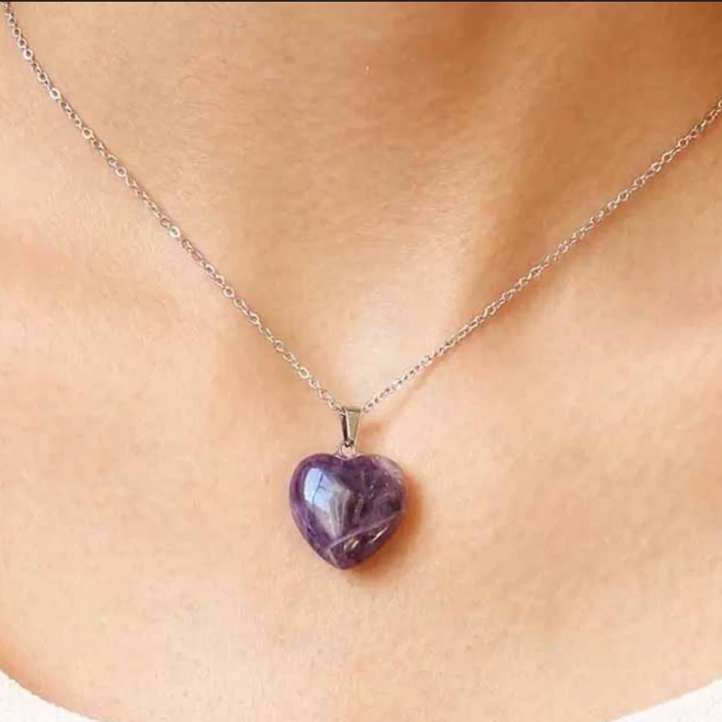 آویز سنگ آمیتیست اصلی متوسط اویز قلب امیتیست طبیعی سنگ تقویت چشم سوم سنگ تقویت ذهن اویز امیتیست قلبی سنگ ارامبخش سنگی