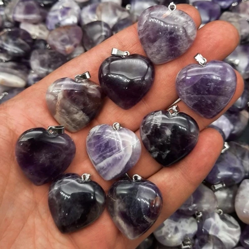 آویز سنگ آمیتیست اصلی متوسط اویز قلب امیتیست طبیعی سنگ تقویت چشم سوم سنگ تقویت ذهن اویز امیتیست قلبی سنگ ارامبخش سنگی