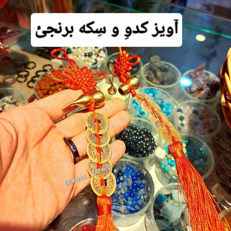 آویز سکه چینی اویز کدو برنزی اویز سکه 5تایی اویز کدو چوبی با سکه اویز سکه ژاپنی اویز دکوری چینی