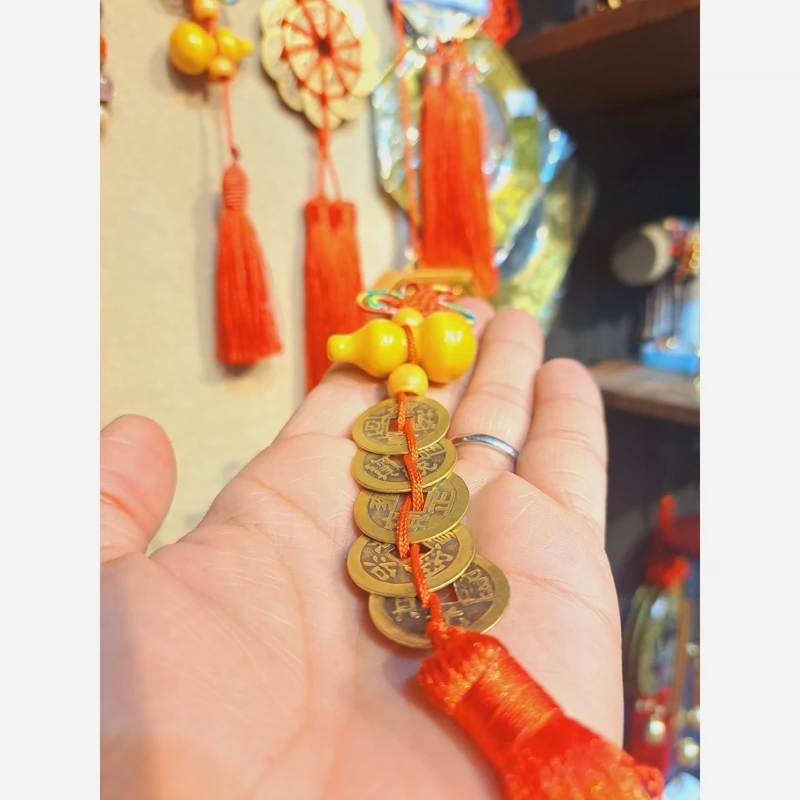 آویز سکه چینی اویز کدو برنزی اویز سکه 5تایی اویز کدو چوبی با سکه اویز سکه ژاپنی اویز دکوری چینی