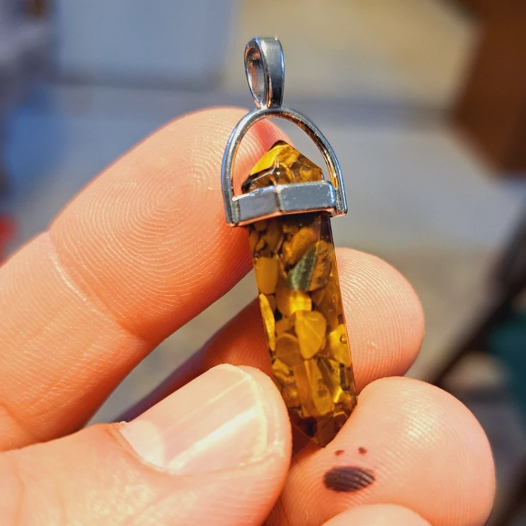 آویز منشور چشم ببر اصلی اویز پاندول چشم ببر معدنی سنگ پاندولیوم سنگ گردنبند چشم ببر اصلی سنگ یوگا اویز شاقول سنگی اصل