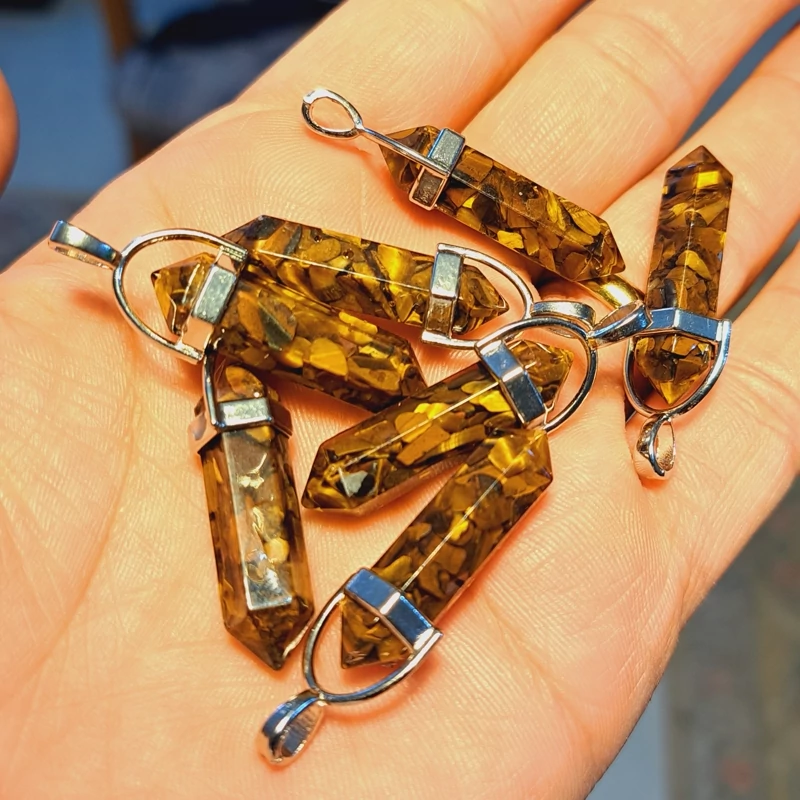 آویز منشور چشم ببر اصلی اویز پاندول چشم ببر معدنی سنگ پاندولیوم سنگ گردنبند چشم ببر اصلی سنگ یوگا اویز شاقول سنگی اصل