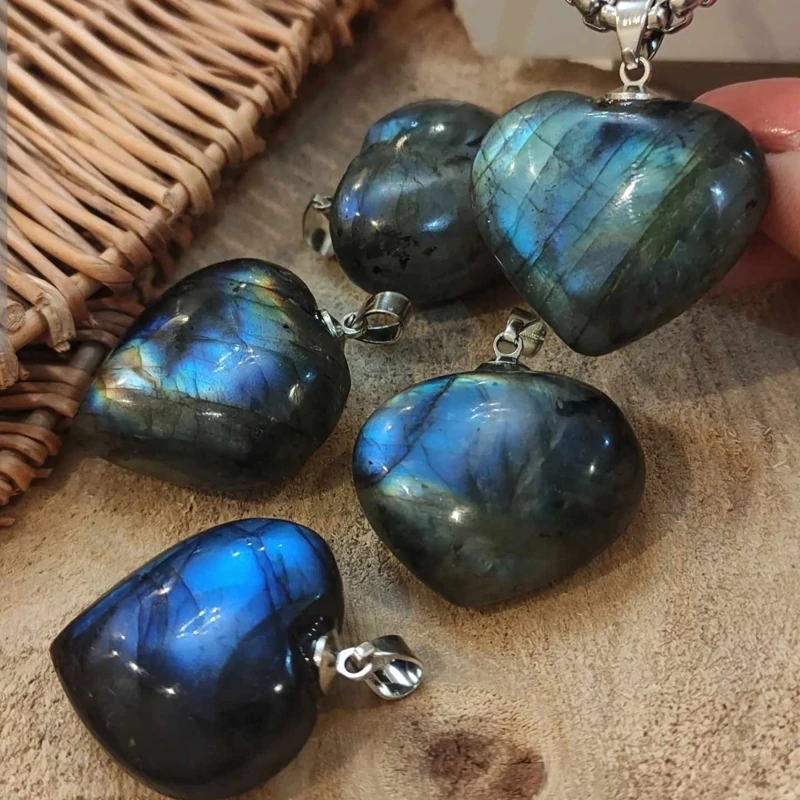 آویز لابرادوریت طرح قلب اصل اویز سنگ لابرادوریت ابی اویز قلب لابرادوریت اویز لابرادوریت طوسی فروشگاه سنگ سلما گالری