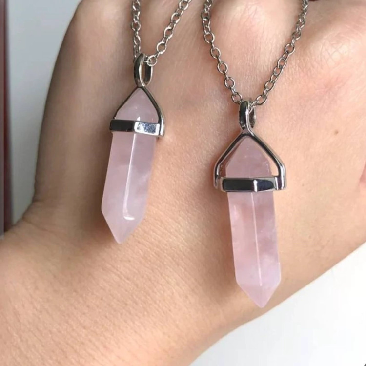 آویز منشور رزکوارتز طبیعی اصل اویز رز کوارتز منشوری