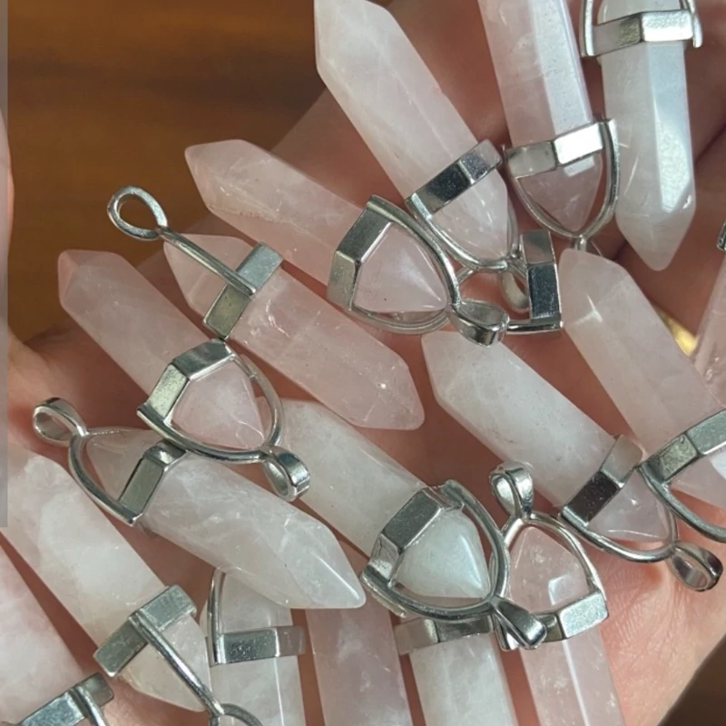 آویز منشور رزکوارتز طبیعی اصل اویز رز کوارتز منشوری