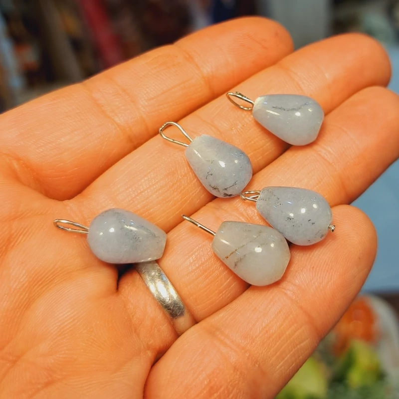 آویز آنجلیت اشکی 1.5سانتی مهره انجلیت ابی مهره سنگی انجلیت گوی سنگی انجلیت اویز انجلیت طبیعی گردنبند انجلیت سلما گالری
