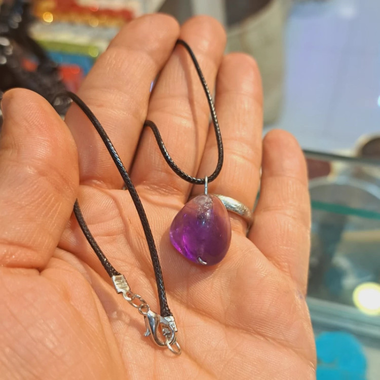 آویز آمیتیست طبیعی اویز سنگ امیتیست اویز امیتیست بنفش اویز سنگ تولد اویز سنگی طبیعی کادویی خاص اویز سنگ اصل سنگ بنفش