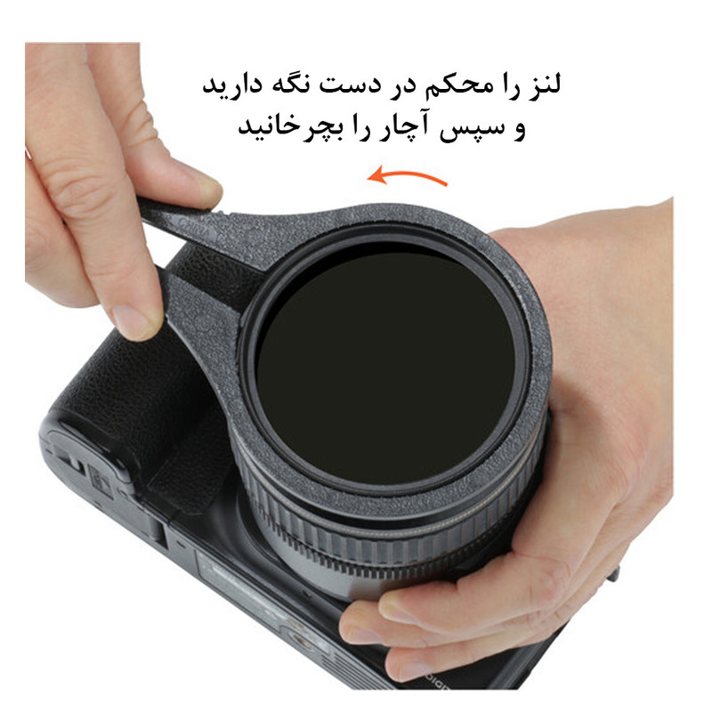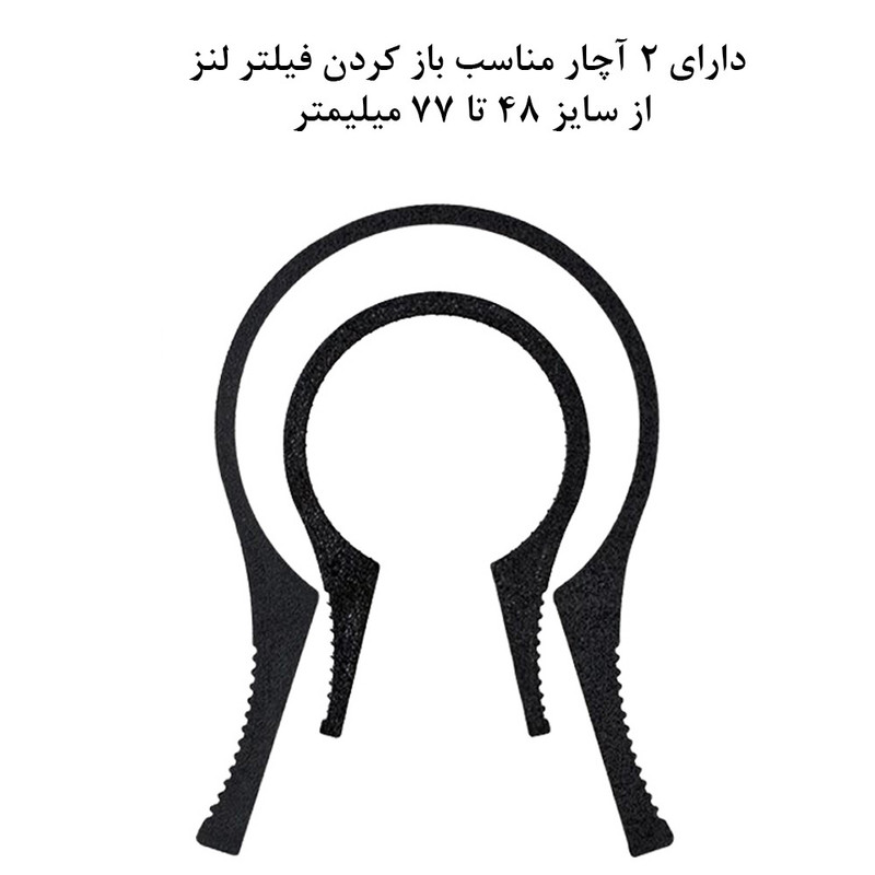 نحوه استفاده از محصول به این صورت است که با توجه به دهانه لنز خود آچار 58-48 یا 77-62 میلی متری را انتخاب کرده و آن را به دور رینگ فیلتر قرار می دهید.آچار با ایجاد لنگر و افزایش میزان فشار بر روی فیلتر، بدون آسیب و تخریب فیلتر را از روی لنز جدا می کند.
