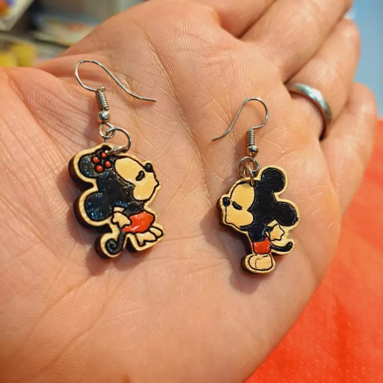 آویز گوشواره میکی موس جفت باهم گشواره میکی موس اویز گوشواره چوبی گشواره فیگور میکی موس اویز میکی موس اویز چوبی