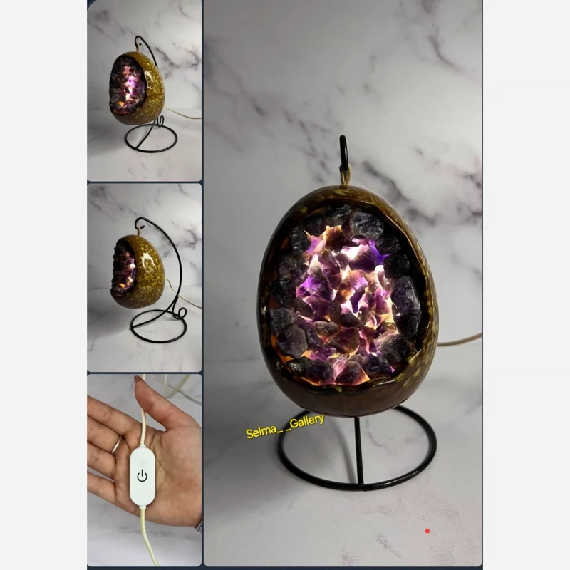 اباژور سنگ طبیعی امیتیست راف ژئود امیتیست بلوری اصل فانوس سنگ طبیعی چراغخواب سنگ امیتیست چراغ خواب سنگ طبیعی سلما گالری